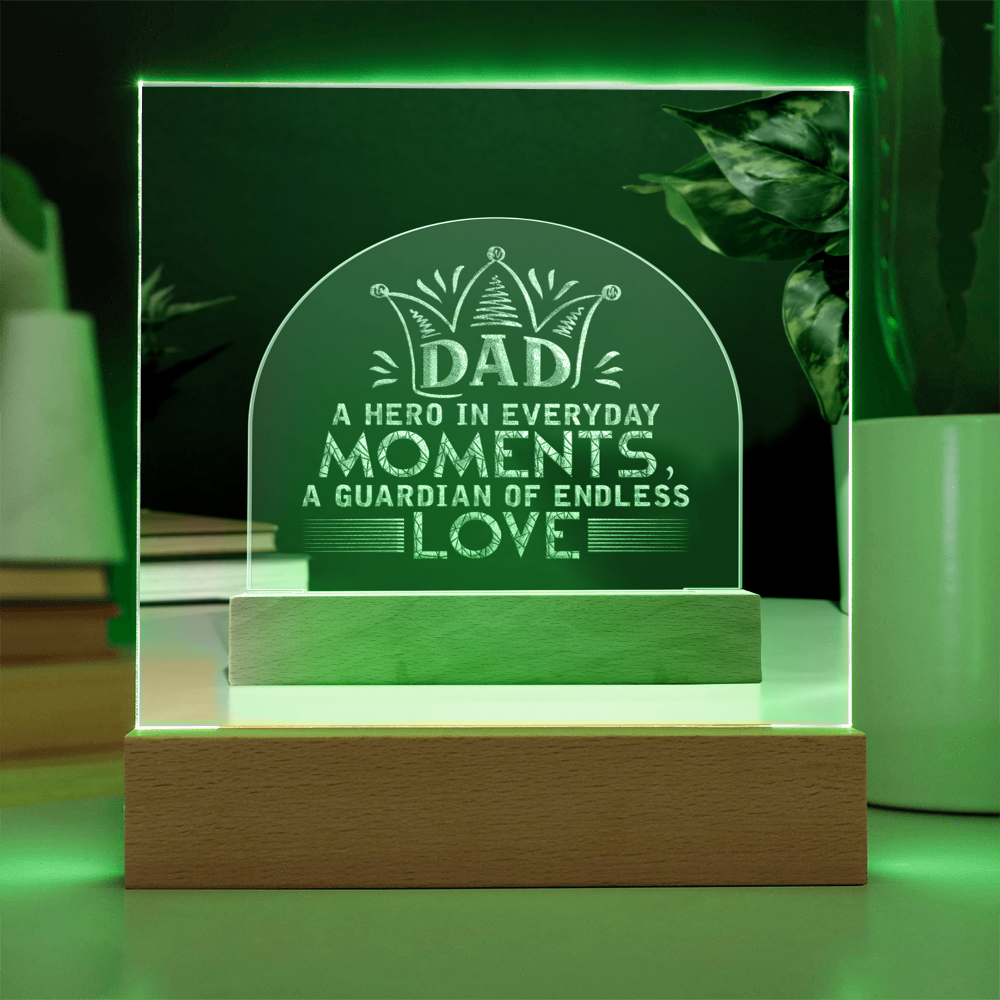 "Dad, A Hero of Everyday Moments. A Guardian of Endless Love" Premium Acrylic Plaque is LED!